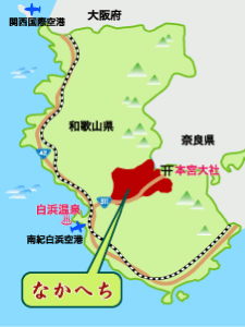 熊野本宮大社、熊野速玉大社、熊野那智大社の「熊野三山」に至る熊野参詣道のうち、田辺から本宮、新宮、那智に至る山岳路が「中辺路」(なかへち)と呼ばれています。